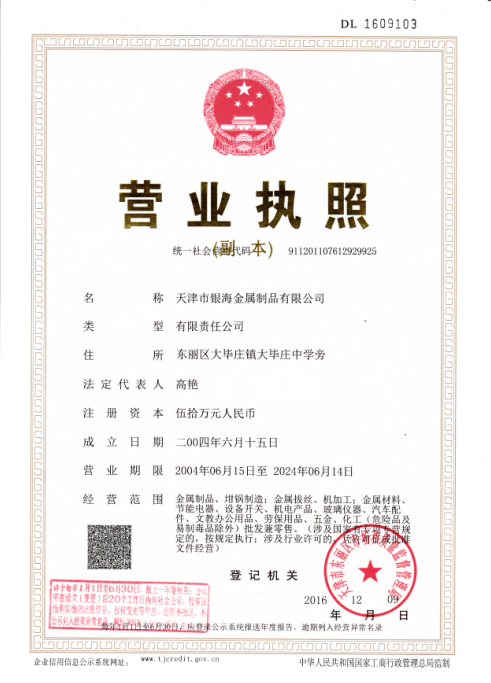 公司名稱(chēng): 天津市銀海金屬制品有限公司